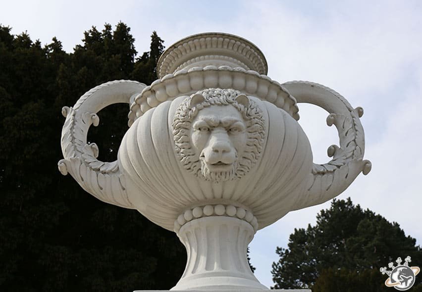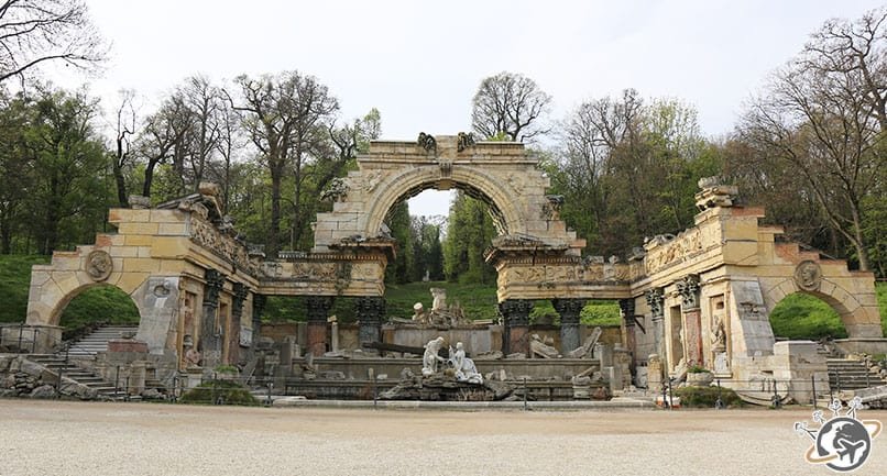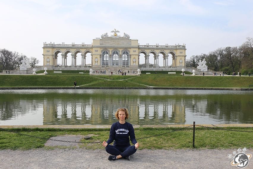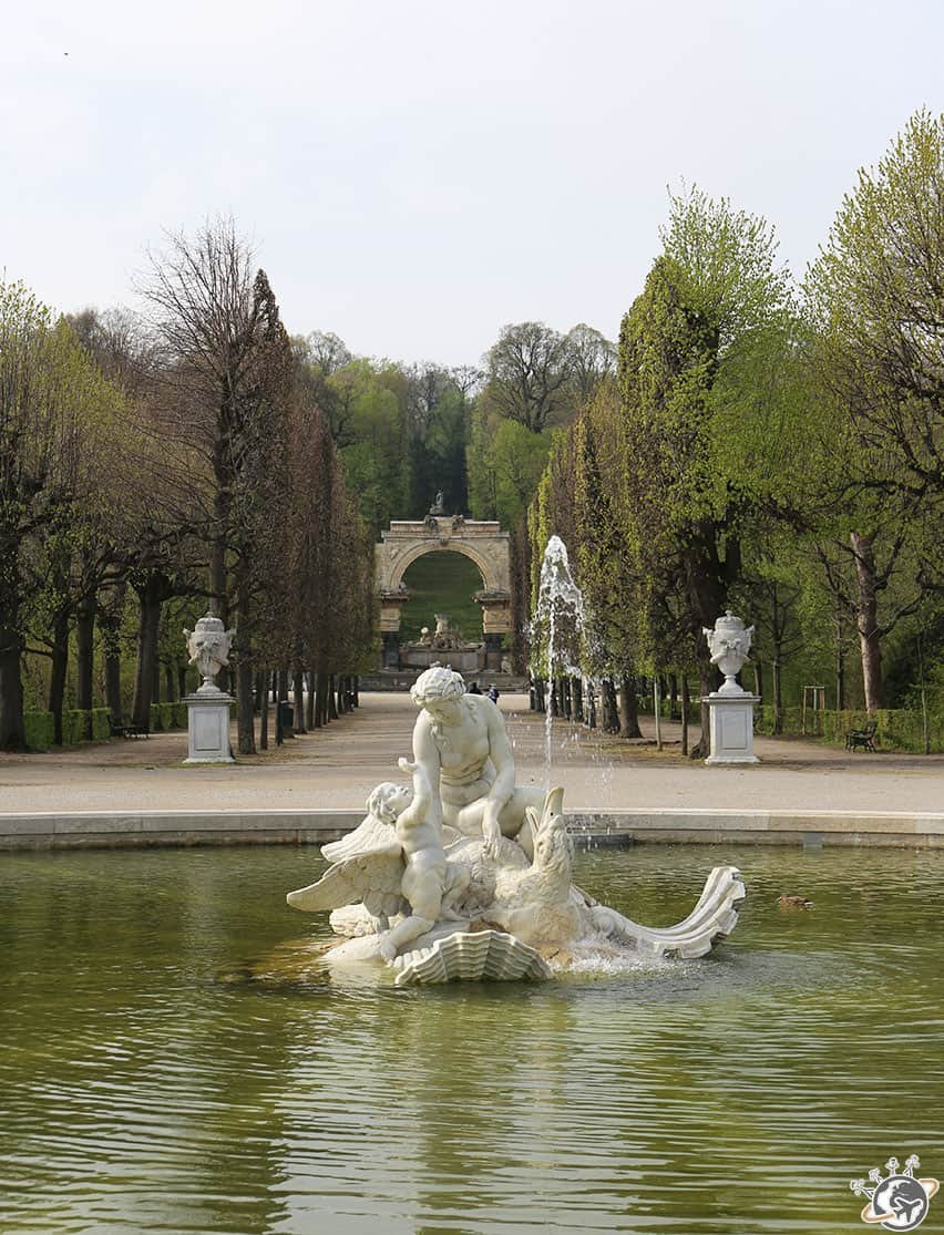Après l’intérieur, petite balade dans les jardins, pas encore fleuris, donc un peu ternes, jusqu’à la fameuse Gloriette, grand pavillon d’été édifié à l’époque de Marie-Thérèse d’Autriche.