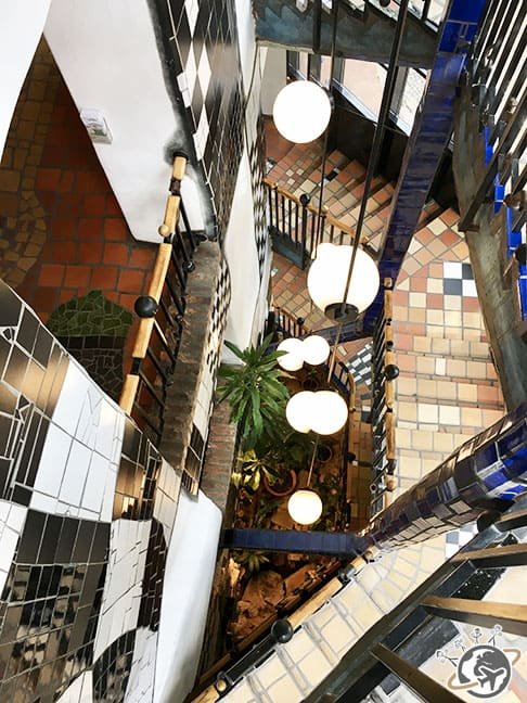 Dans ce musée, le sol n’est pas droit à certains endroits. C’est un peu déroutant au début mais on s’y fait. Comme Gaudi, Hundertwasser voulait que son art se rapproche de la nature et comme il n’y a pas de lignes droites dans la nature, il ne pouvait pas en avoir dans ses oeuvres. Les 2 étages consacrés à Hundertwasser sont top, l’expo temporaire beaucoup moins.