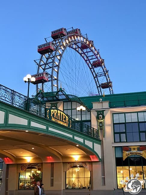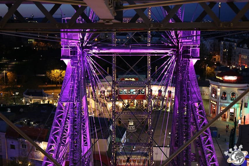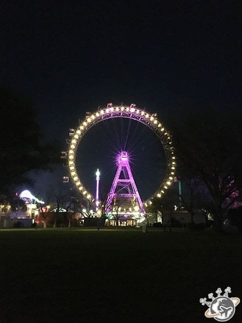 La nuit va bientôt tomber, pourquoi ne pas prendre un peu de hauteur en allant faire un tour de grande roue au Prater, le parc d’attractions local ?