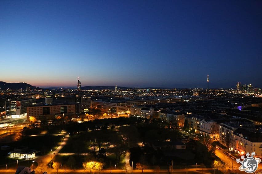 Ce n’était pas non plus ma meilleure idée ! C’est un peu loin et la vue de Vienne la nuit n’a pas grand intérêt. On aurait pu s’en passer. Je vous montre quand même.