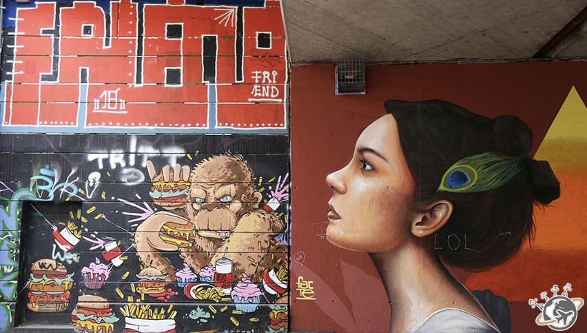 Côté oeuvres, il y a plus de graffitis que de fresques, comme on peut en voir à Londres ou à Paris, mais c’est une belle balade.