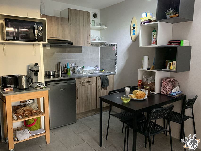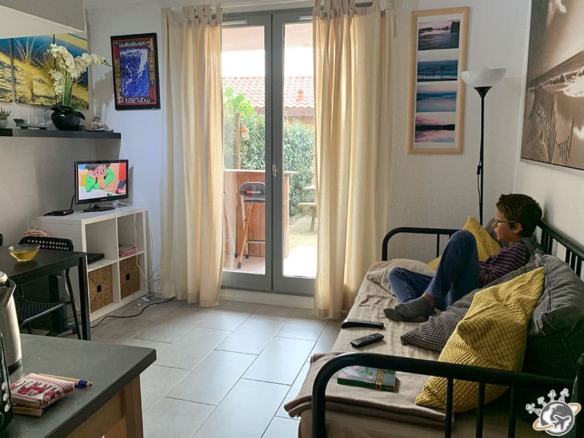 L’appartement était fonctionnel, joliment décoré par Franck, avec une terrasse où nous prenions nos déjeuners au soleil. Et surtout nous avions quasiment les pieds dans le sable. Très pratique car nous avons passé beaucoup de temps sur la plage.