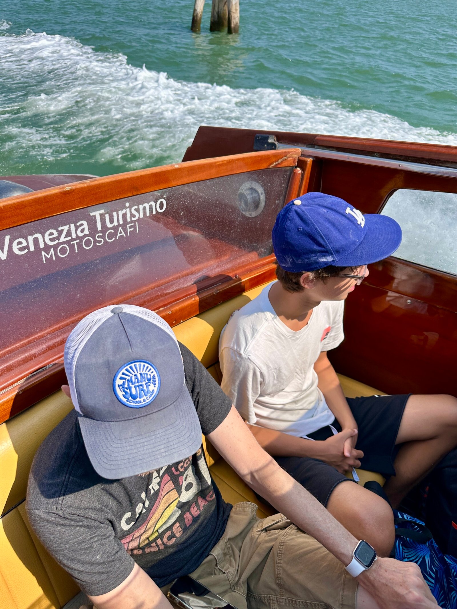 On passe par des zones où l’on ne reviendra sans doute pas, on longe des façades discrètes, on observe la ville qui se dévoile doucement. Arriver à Venise par l’eau, avec un soleil indécent, c’est la plus simple et la plus belle façon de la découvrir, que ce soit la première fois ou non. Comme notre arrêt était le dernier, nous étions installés à l’arrière du bateau, l’un des meilleurs endroits pour profiter pleinement du trajet.