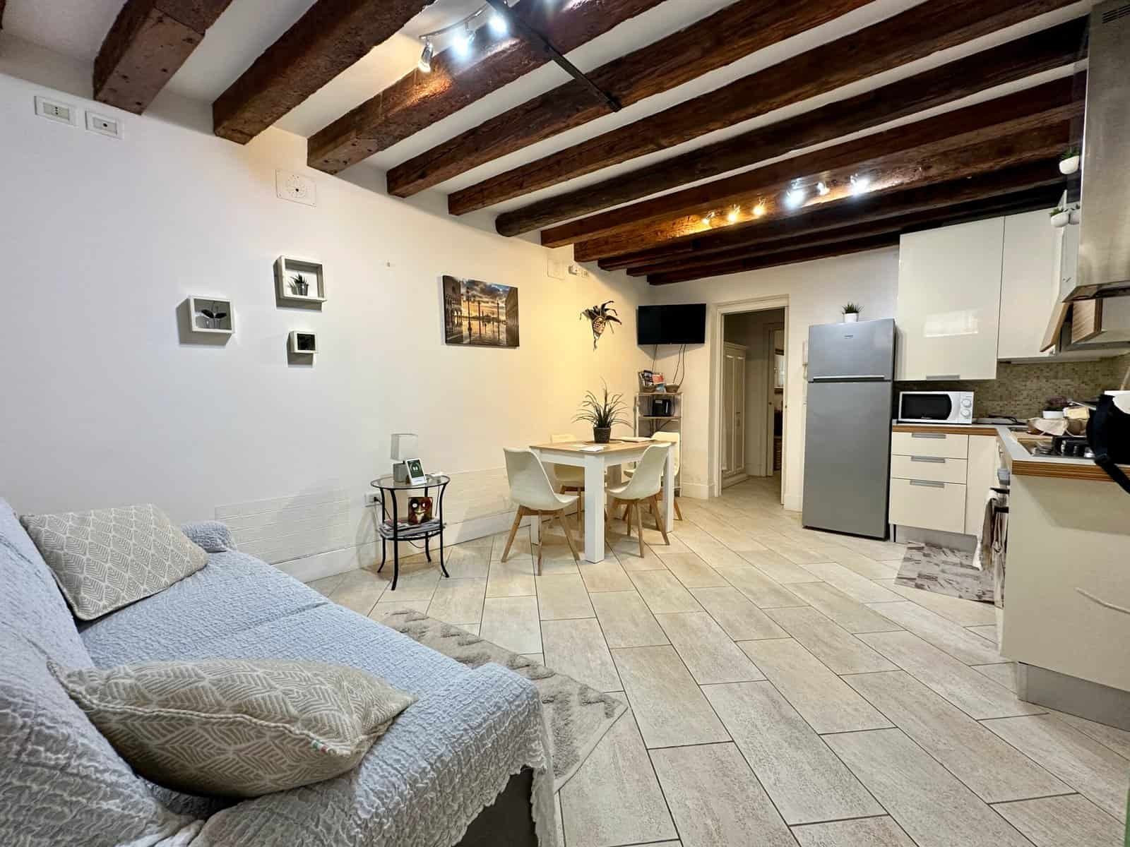 Nous avons choisi l’option 2 : un appartement dans le quartier de l’Arsenal, au rez-de-chaussée (sans escalier riquiqui, ce qui est un luxe à Venise), dans une ruelle calme à deux pas de la place Saint-Marc.