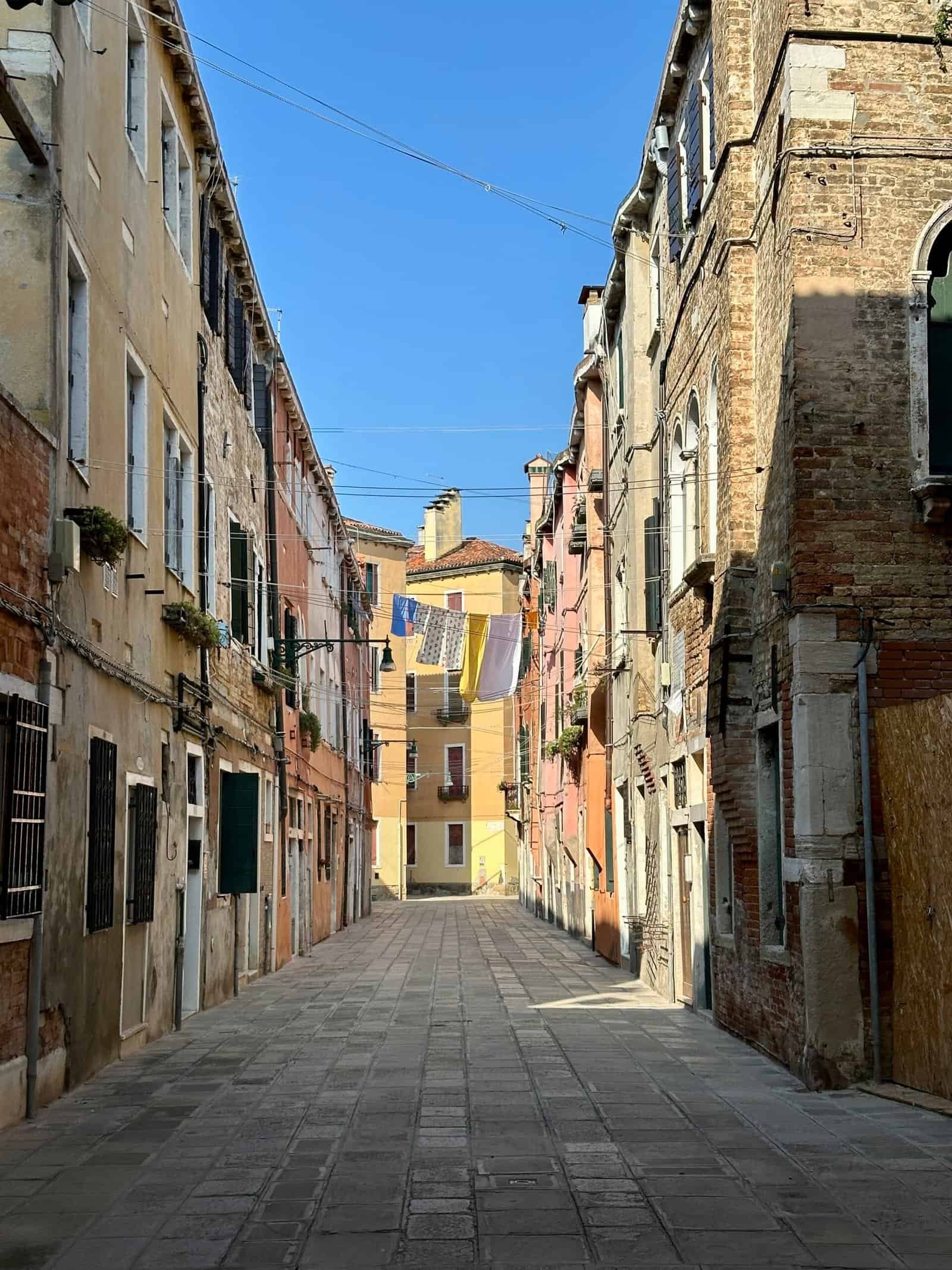 Depuis l’Arsenal, nous sommes allés, après un stop pour prendre notre première glace, vers la Riva degli Schiavoni, avec une vue superbe sur l’île de San Giorgio Maggiore. Ensuite, cap sur le quartier de Castello, bien moins fréquenté : Giardini della Biennale, petites ruelles derrière l’Arsenal, Campo Bandiera e Moro, puis San Zaccaria. Une balade parfaite pour s’imprégner de l’ambiance vénitienne sans la foule.