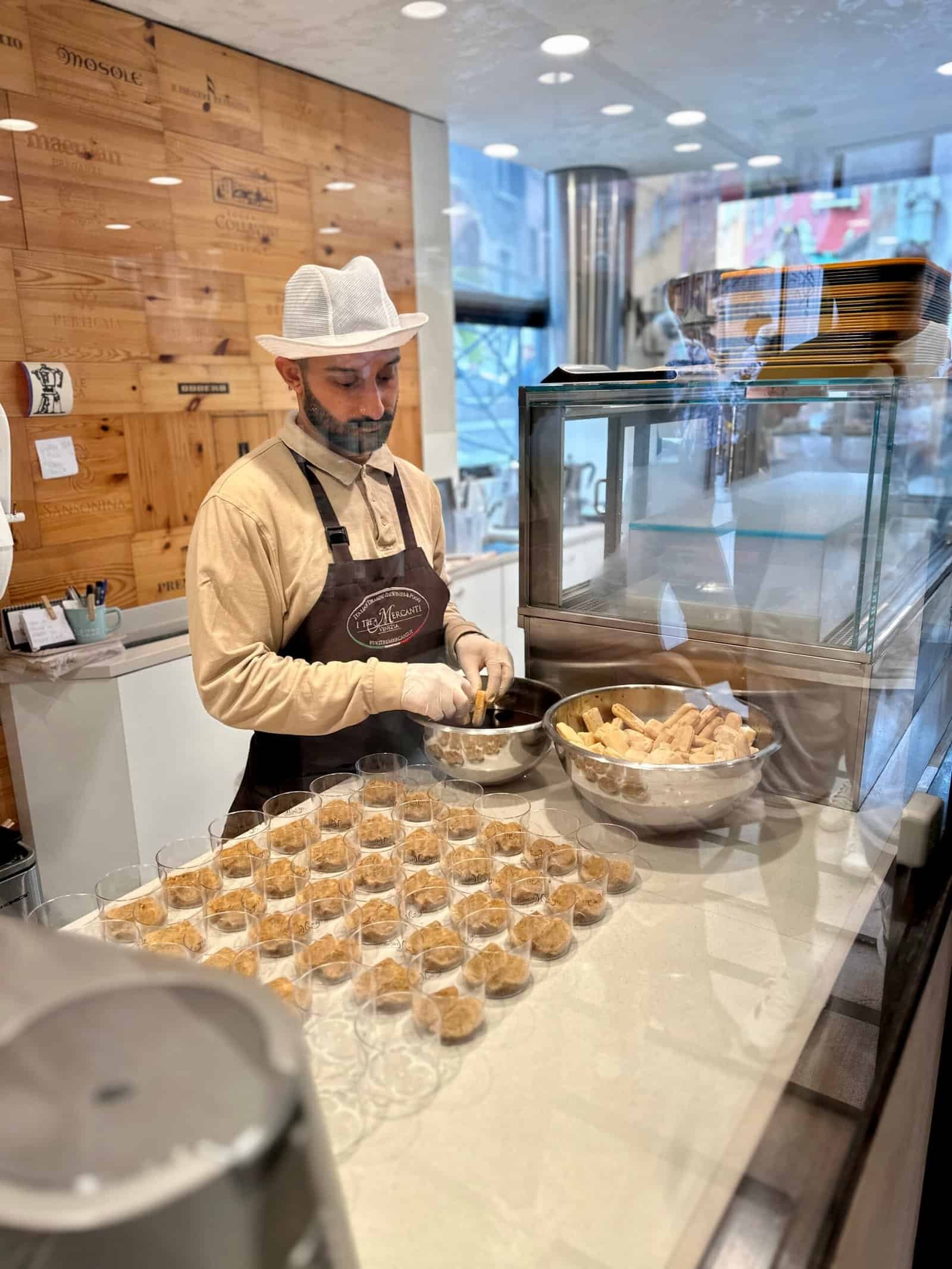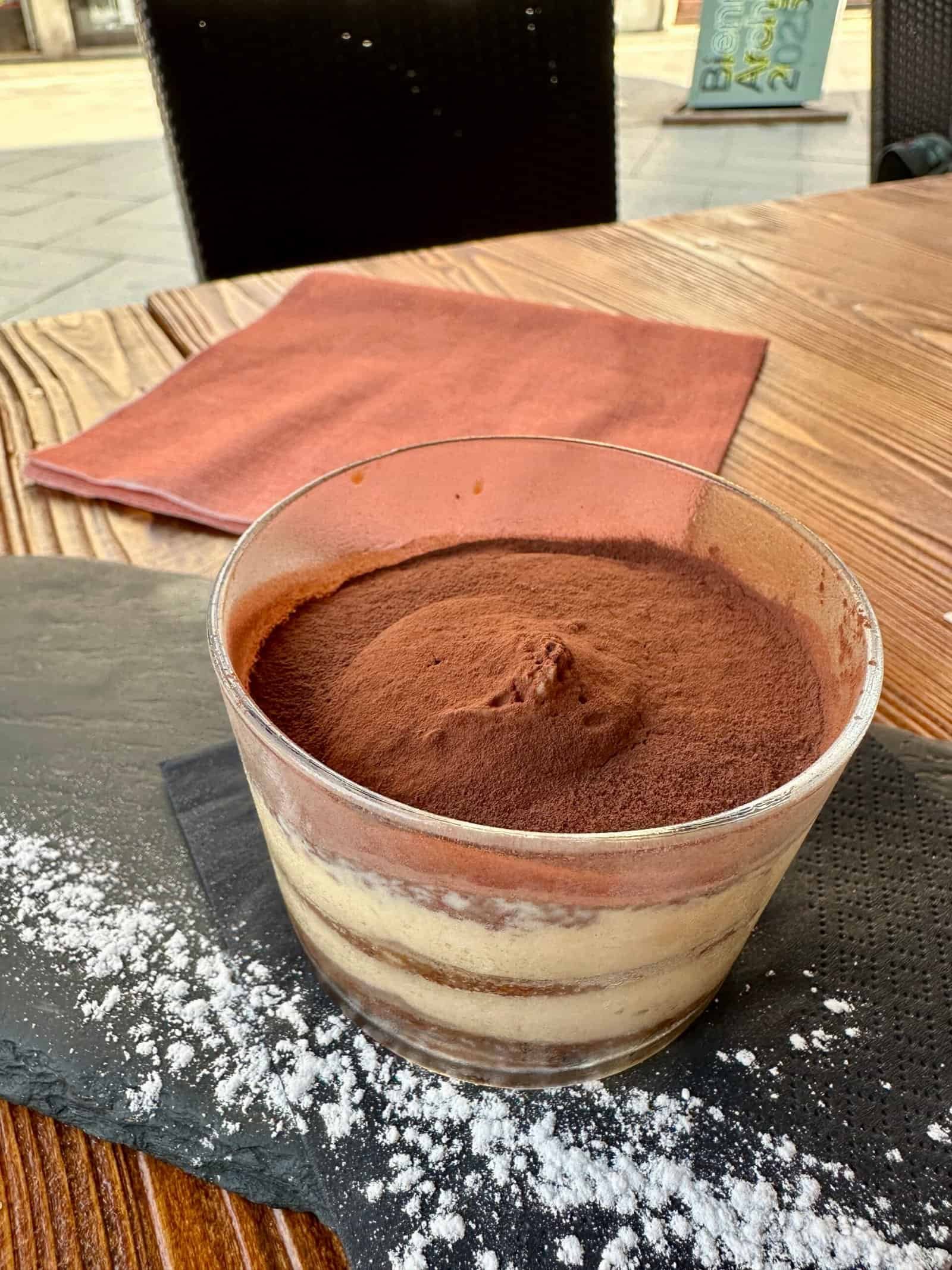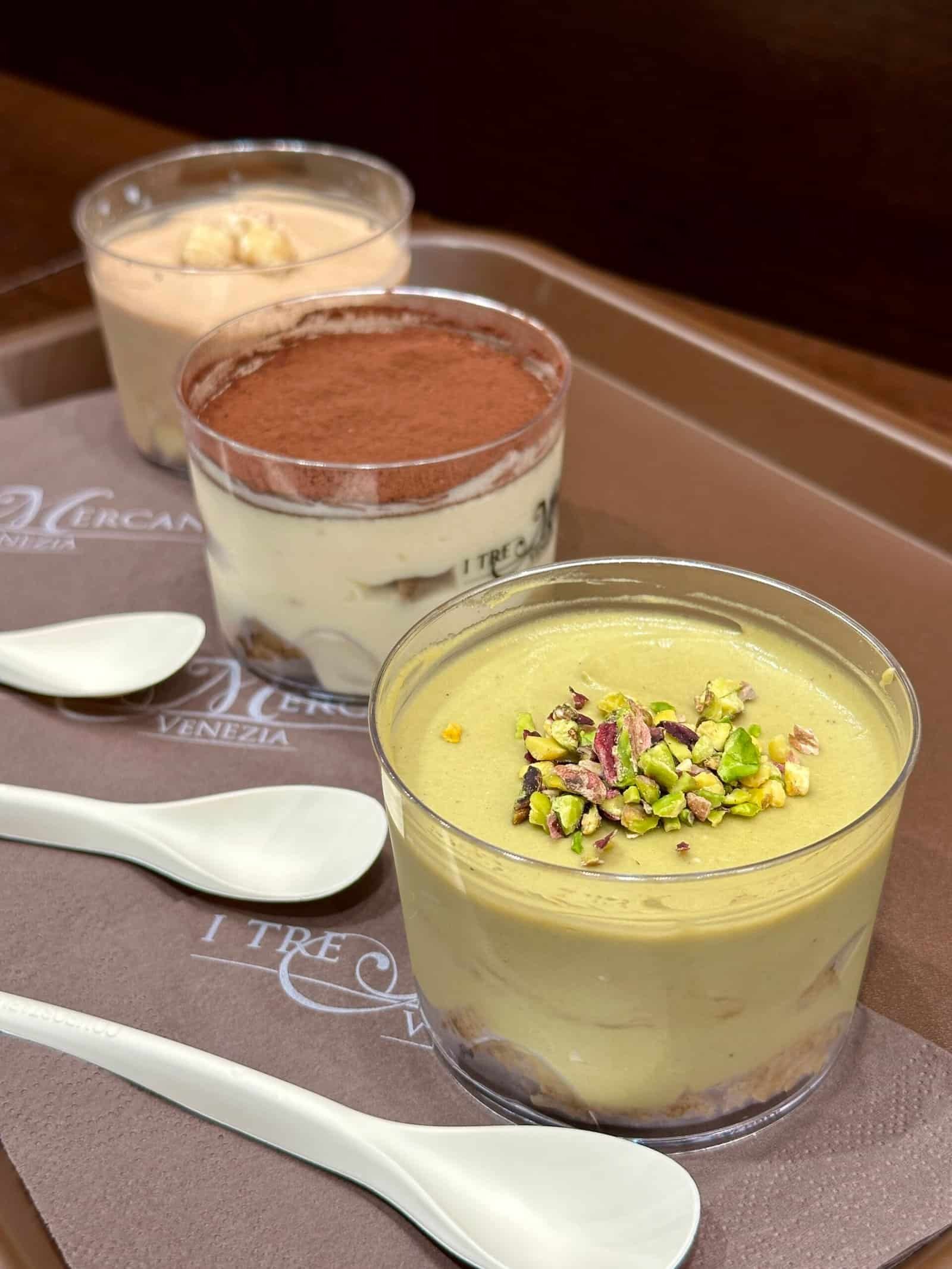Comme il est important de bien goûter les spécialités locales, nous avons décidé de comparer avec celui de chez Il Tre Café, annoncé comme un des meilleurs tiramisus de Venise. Que vous soyez puriste ou aventurier, vous trouverez votre bonheur dans les saveurs proposées : café, noisette ou pistache. Les trois sont bonnes, mais le café reste notre préféré. En tout cas, à 4,90 € le pot, ce serait dommage de s’en priver.